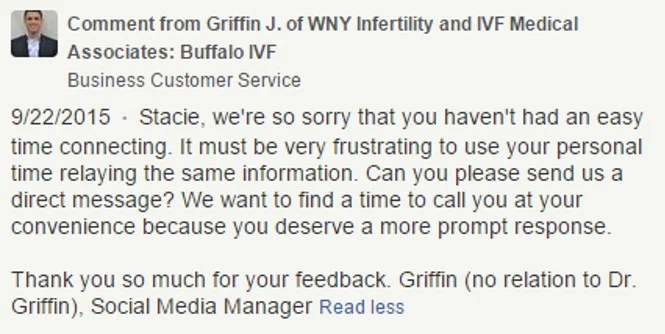 If your goal is to be heard and listened to, however, may I suggest another approach? As someone that helps fertility centers respond to negative and positive reviews, I would much rather you feel the lasting vindication of a corrected problem than temporary relief. I want your problem to be corrected (most of the time it can be, one way or another) and I want the practice to get better. The way you write your review often determines what is done with the information it contains.